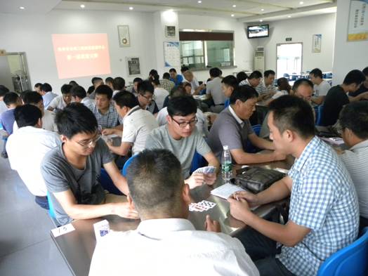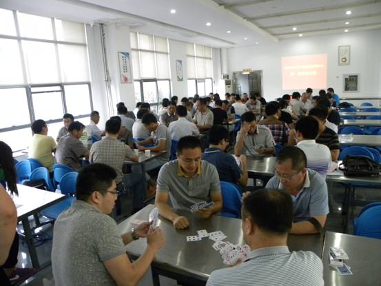 上午8:30分,掼蛋大赛正式开始,卜庆生主任讲话并宣布比赛规则。本次比赛采用淘汰制,一局定输赢,分为初赛、复赛和决赛。赛场上选手们个个认真的出牌对弈,尽力发挥出最高水平。本着友谊第一、比赛第二的原则,经过六轮的激烈角逐,最后根据各队的比赛成绩选出一等奖一组,二等奖一组,三等奖两组,卜主任、刘主任分别为获奖人员颁奖。