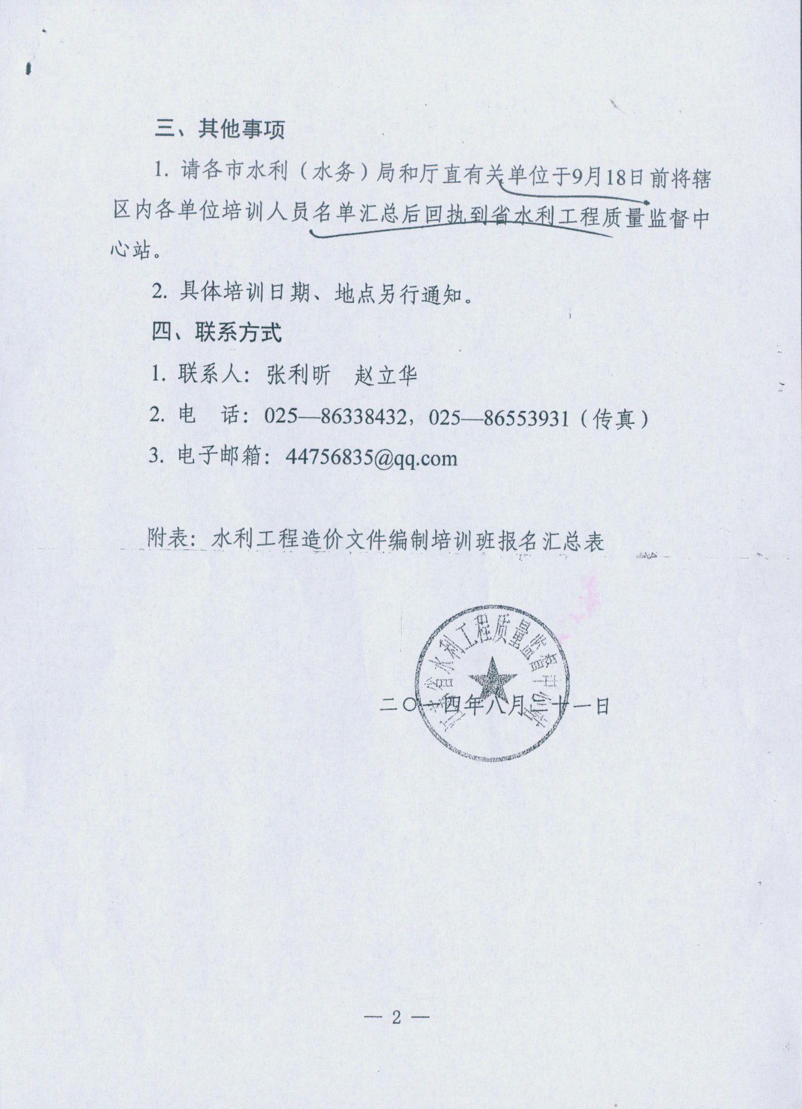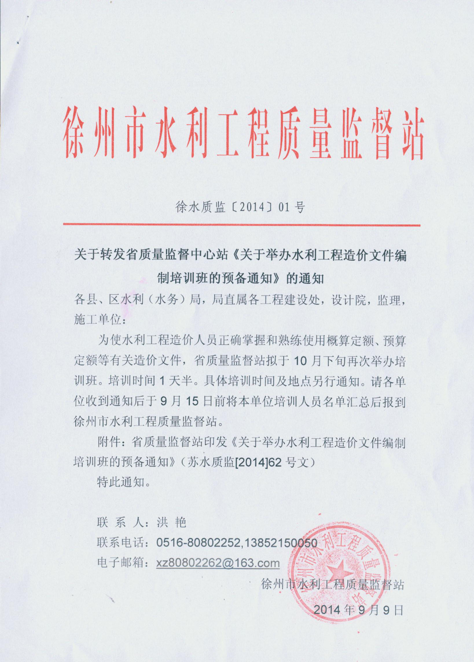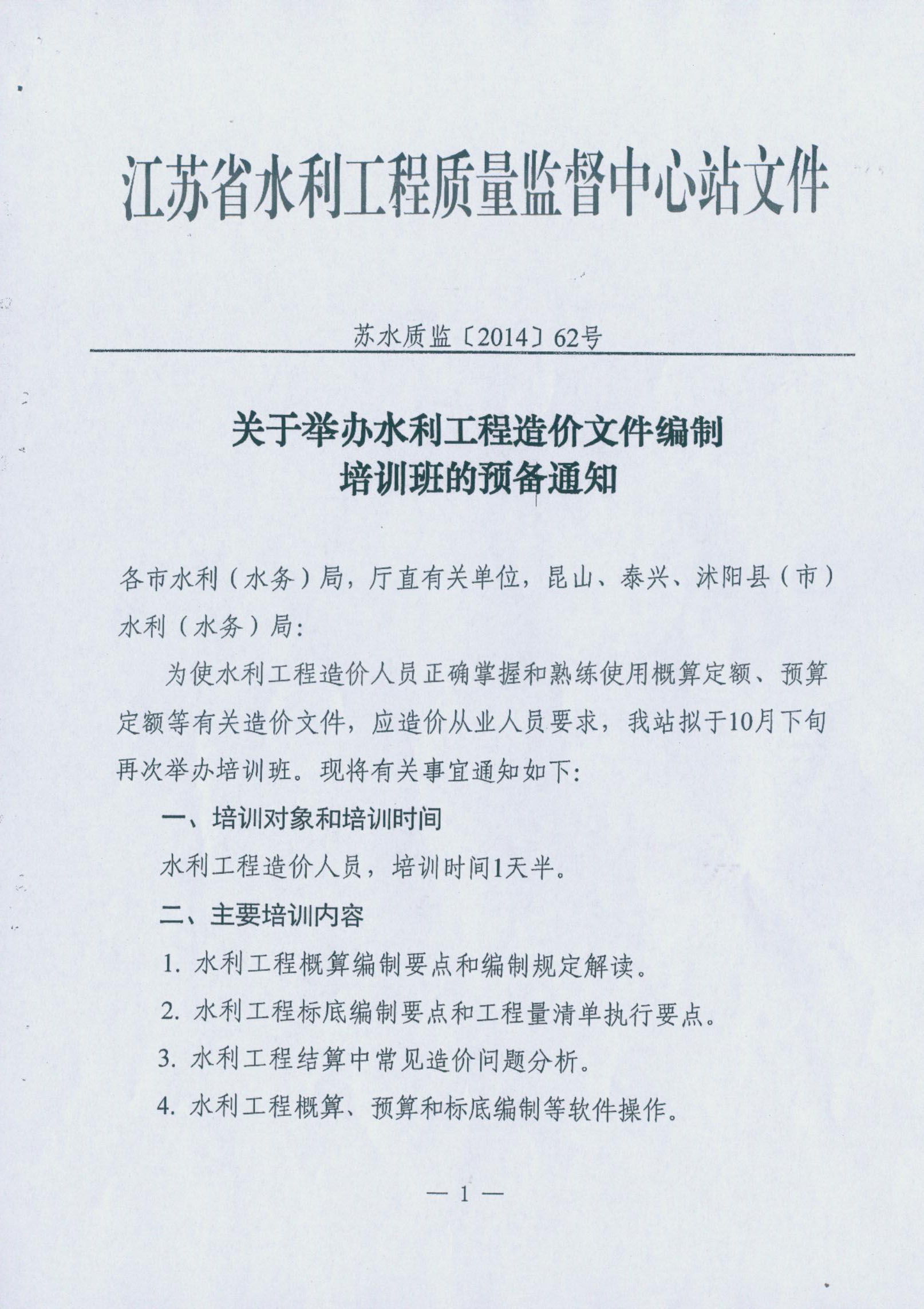 转发《关于举办水利工程造价文件编制培训班的预备通知》的通知