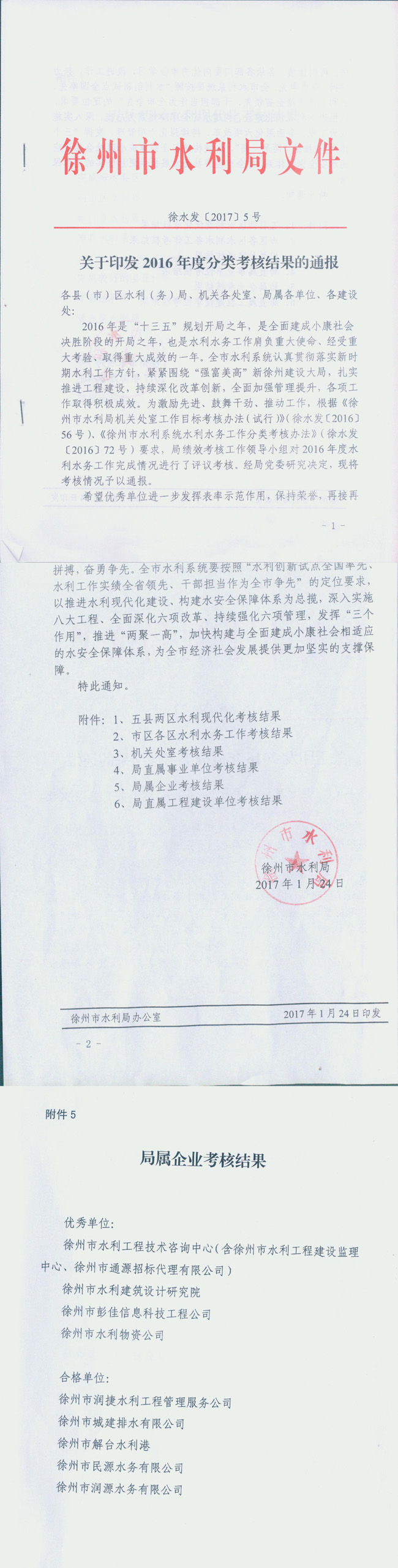 2016年度考核中监理中心荣获局属企业优秀单位称号