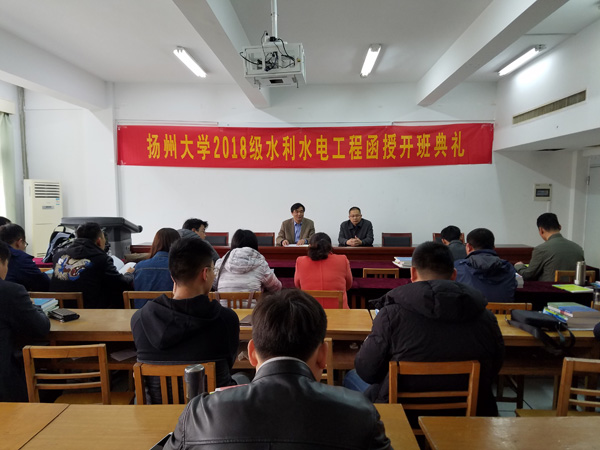 3月24日--25日,扬州大学2018级水利水电工程徐州函授班开班仪式在江苏建筑职业技术学院进行,并进行第一次面授。扬州大学水利与能源动力学院周济人副院长、中心卜庆生主任出席开班仪式并讲话,中心22名职工被扬大录取,并参加函授学习。 本次函授班是徐州市水利工程建设监理中心根据国家有关文件精神及单位工作实际需求,与扬州大学水利与能源动力学院校企合作,联合办学,旨在于让广大一线职工提升自身专业理论知识和业务水平,更好的为全市水利水务工程建设服好务。